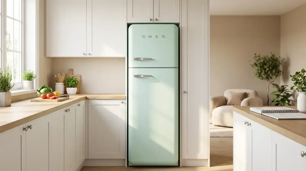 Le design rétro années 50 constitue la signature visuelle de Smeg. Les lignes arrondies et les finitions soignées transforment chaque réfrigérateur en véritable élément décoratif. Cette esthétique vintage cache une technologie de pointe pour une excellente gestion du froid.